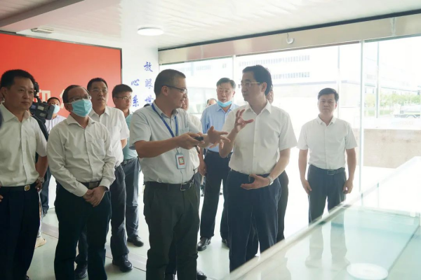 張曉欽一行先后來到南部產業基地材料廠區、原料倉庫、原料廠區,通過實地查看和聽匯報的方式,詳細了解了南部產業基地項目整體規模、建成產值、市場占比、原材料來源、產品研發、人員規模及項目建設進展等情況。胡培紅向張曉欽介紹了中偉股份的核心產品、應用領域、產業布局等,并匯報了南部產業基地項目規劃建設、投資、生產經營等方面的最新進展。